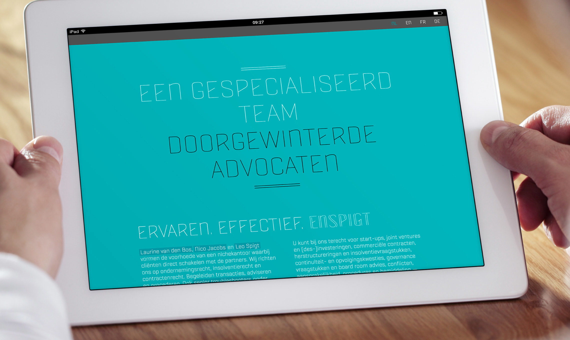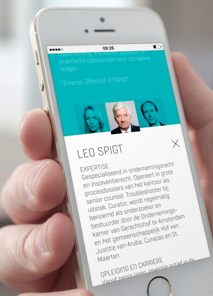 Enspigt is een boutique van doorgewinterde advocaten met een bijzondere propositie. Zij werken met ervaren partners in de frontlinie, die worden ondersteund door een achterhoede van senior troubleshooters. Dit zijn juridisch specialisten met een levenslange ervaring in de advocatuur of rechtbank, die hun expertise willen blijven inzetten voor cliënten. Deze klanten profiteren van advies op strategisch niveau en ze worden bijgestaan wanneer er snel ingegrepen moet worden:
