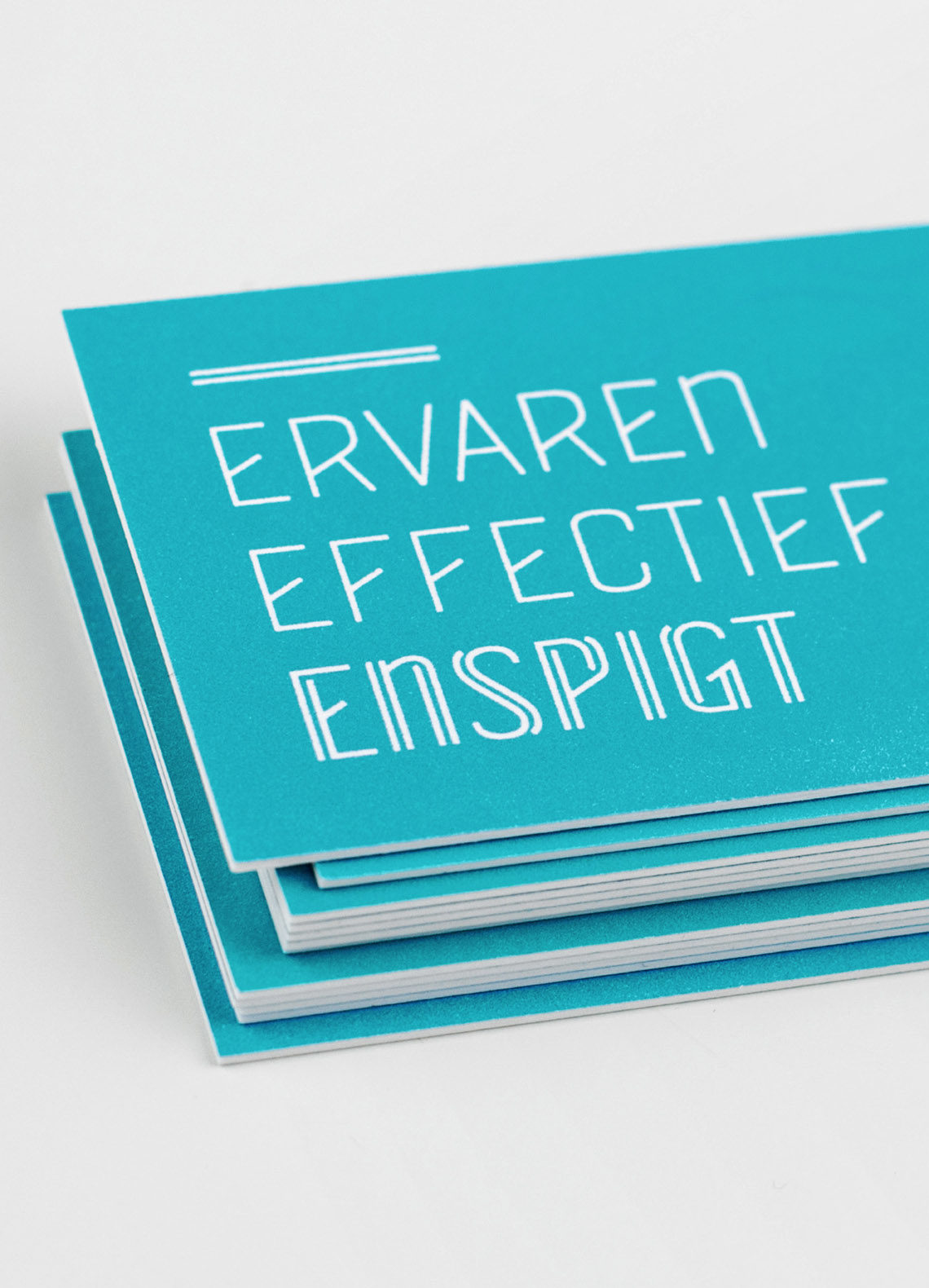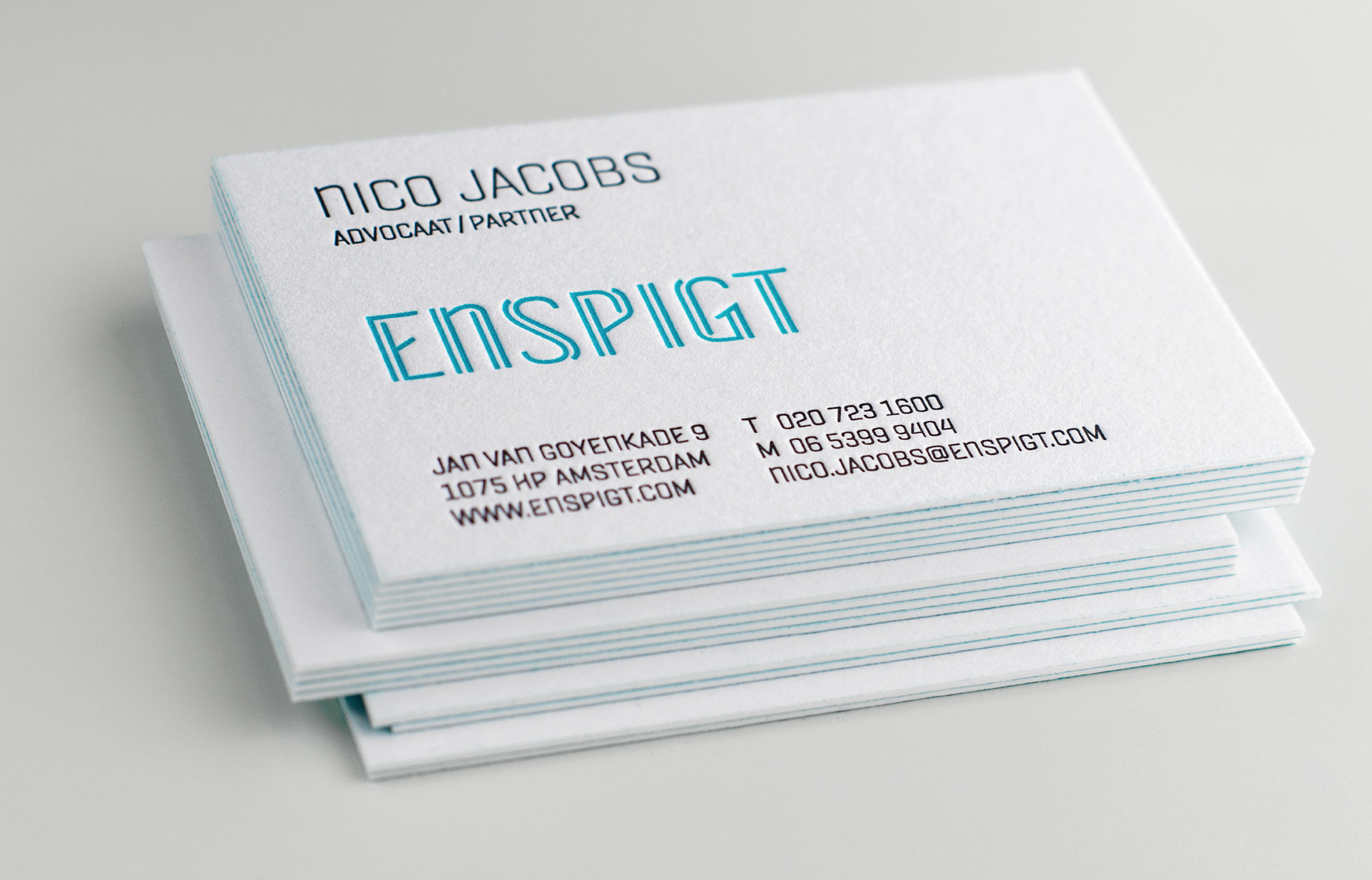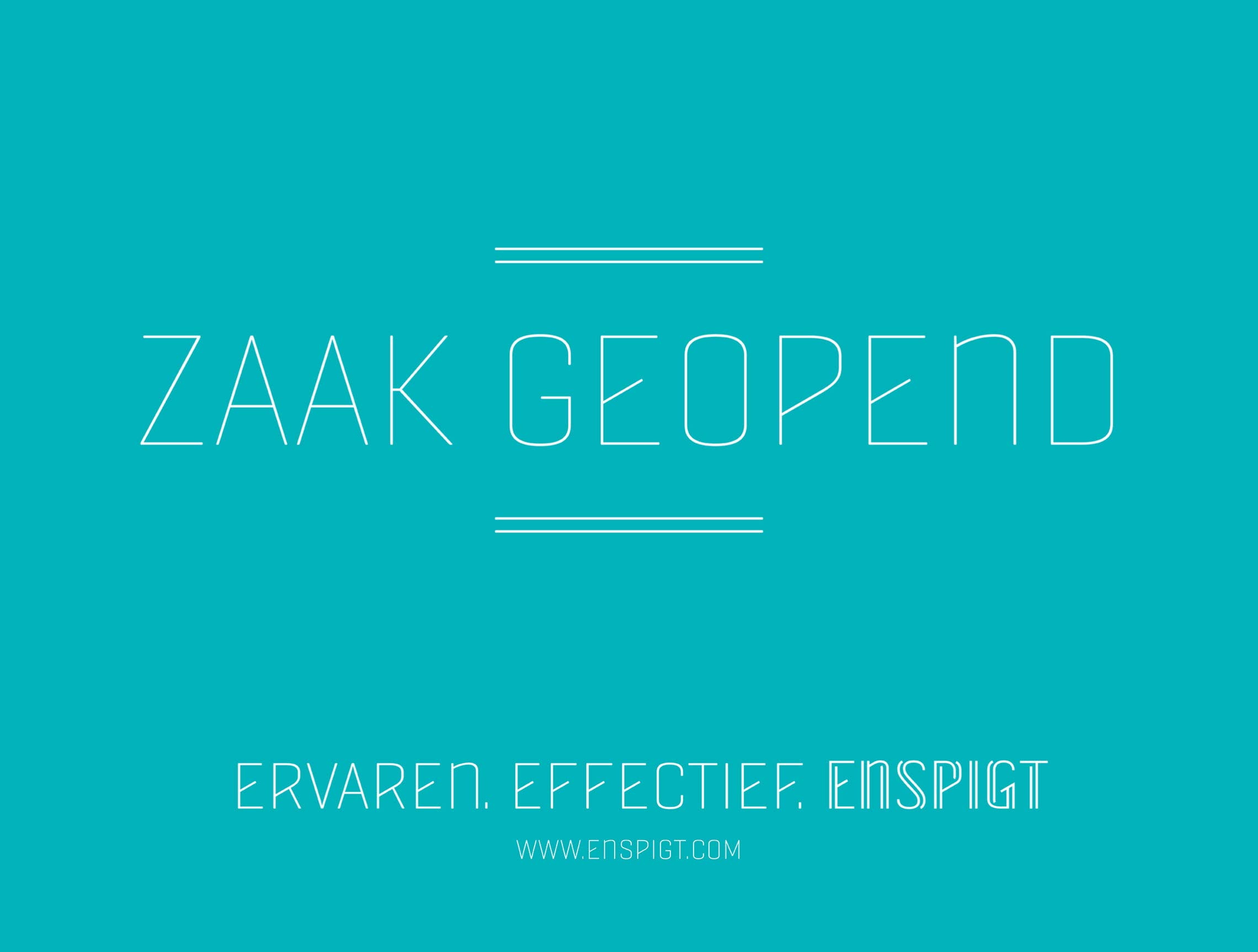 Het woordmerk bestaat uit dubbele lijnen die niet verbonden zijn. Hierdoor kan de linker- of de rechterkant zowel voor- als achtergrond zijn. De ingrepen in de typografie zijn doorgevoerd in de hoofdletters, zodat koppen met hetzelfde karakter kunnen worden neergezet. De dunne letterdikte geeft de precisie aan waarmee Enspigt werkt. De visitekaartjes hebben een diepdruk door gebruik van Letterpress, die het idee van voorgrond en achtergrond perfect illustreert. Taken By Storm realiseerde ook de heldere responsive website waarmee het verhaal van Enspigt online ontvouwt. Zaak geopend!