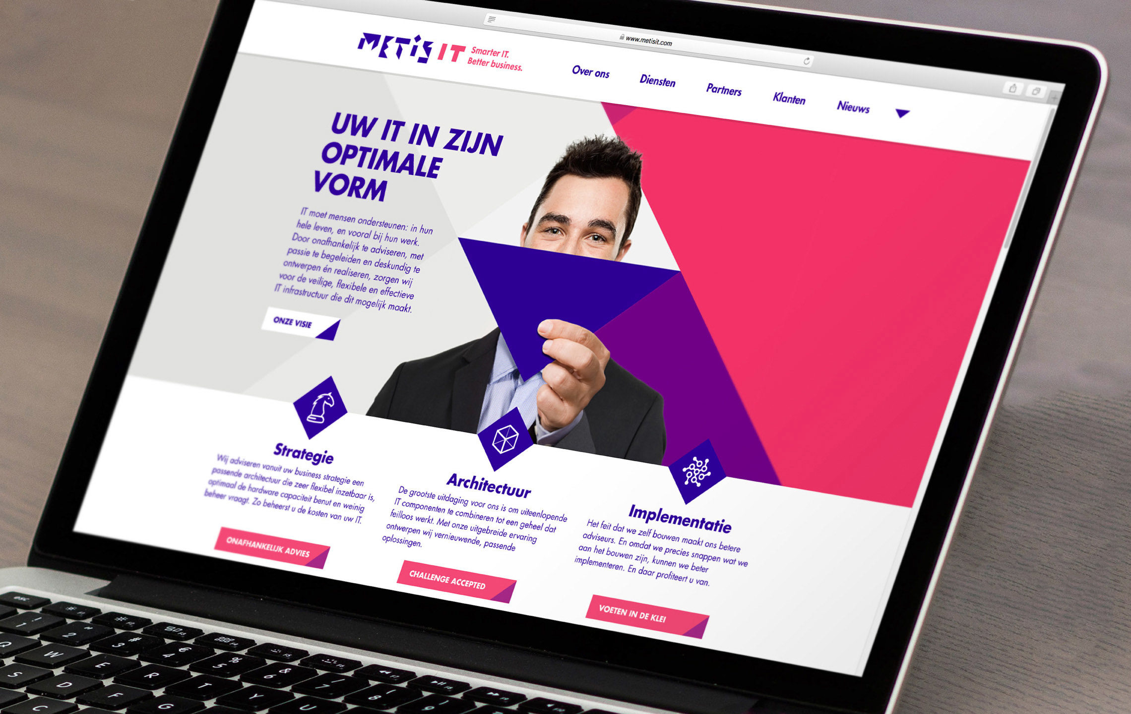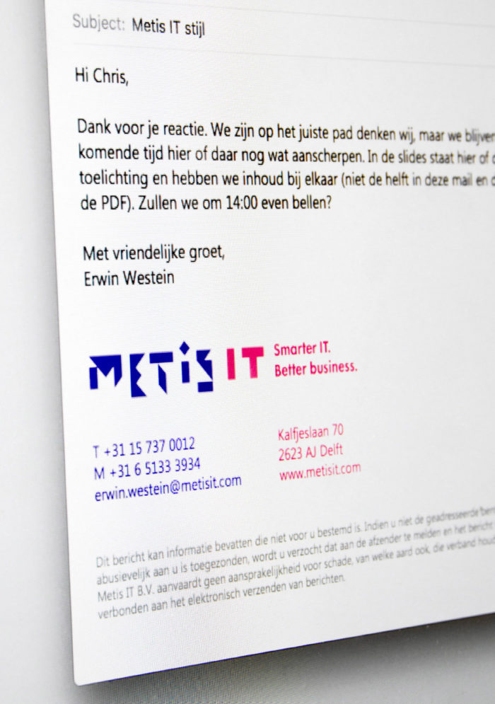 Metis IT benaderde ons met de vraag om hun merkverhaal te formuleren en hun uitstraling menselijker te maken. In twee merksessies kregen we de directie en medewerkers op één lijn met een positionering die voor iedereen begrijpelijk én toepasbaar is.