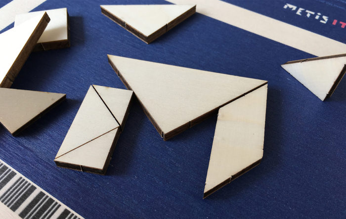 Relaties ontvangen een tangram puzzel. Door die te maken beleven ze zelf de metafoor voor het werk van Metis IT. Zo komt het merkconcept en de identiteit tot leven! De puzzel is direct geprint op hout en de uitgekiende laserstans maakt dat de vormen makkelijk uit te drukken zijn.