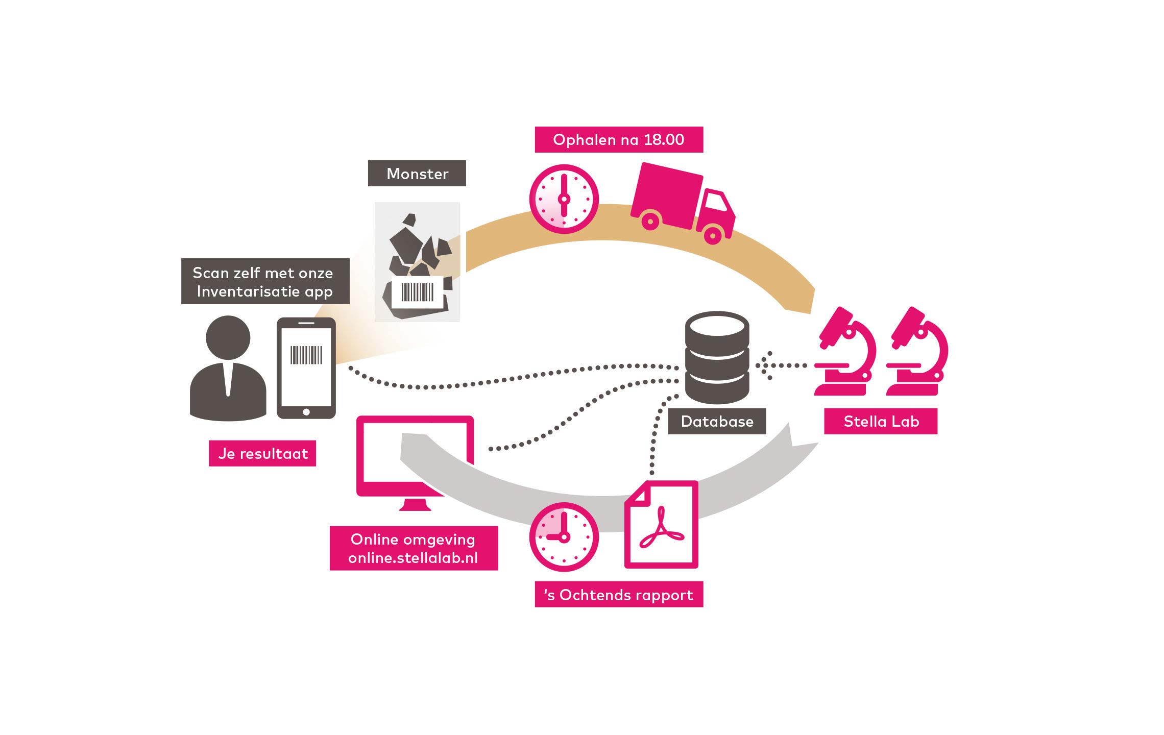 In een schematisch overzicht leggen we aan klanten uit hoe Stella Lab het slim heeft georganiseerd. Dit leidt tot snelle resultaten, gemak en zekerheid.