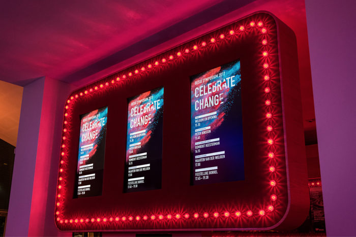 De typografie van de het magazine werd doorgezet in de event stijl. Een passende combinatie van strak en feestelijk.