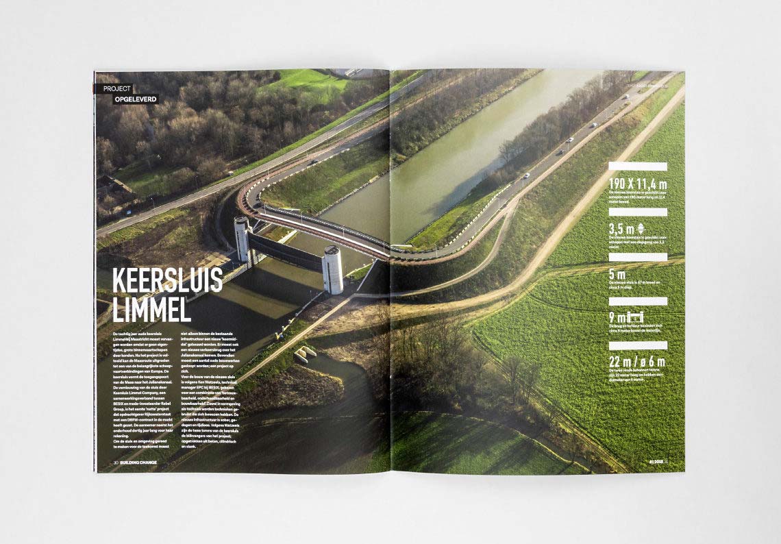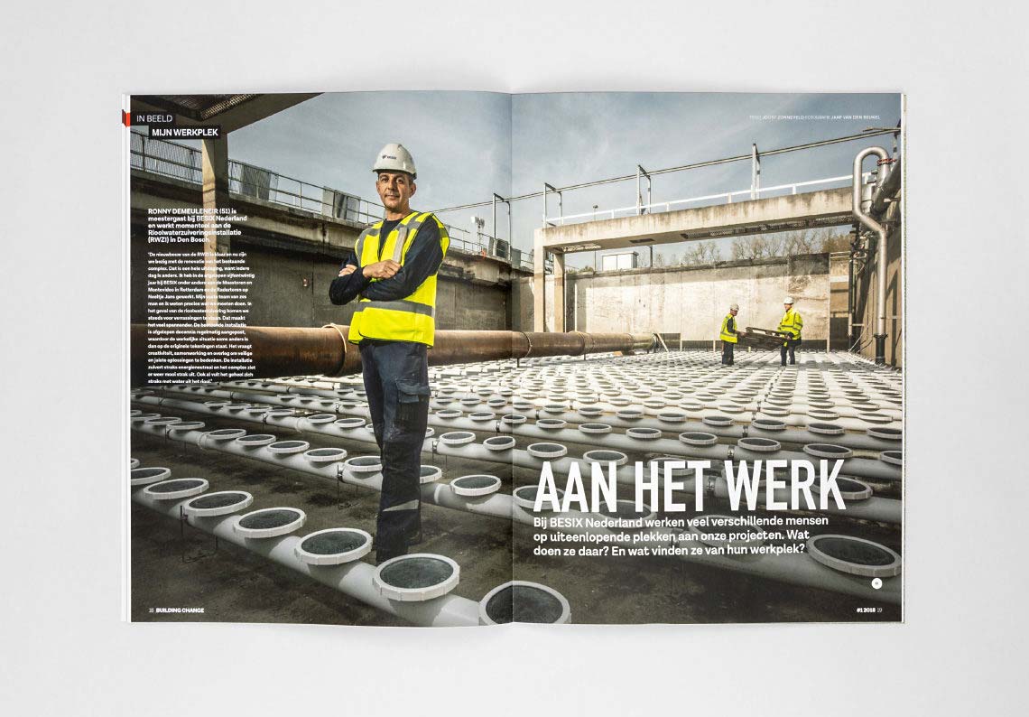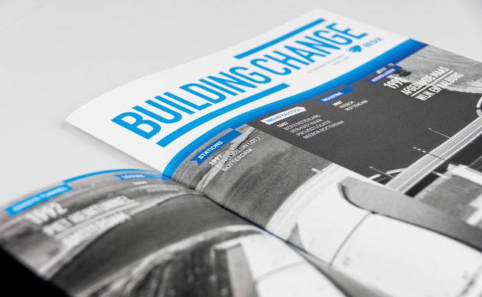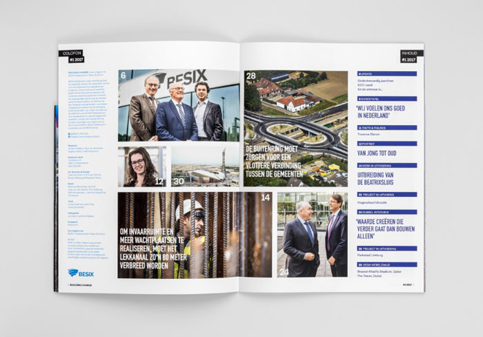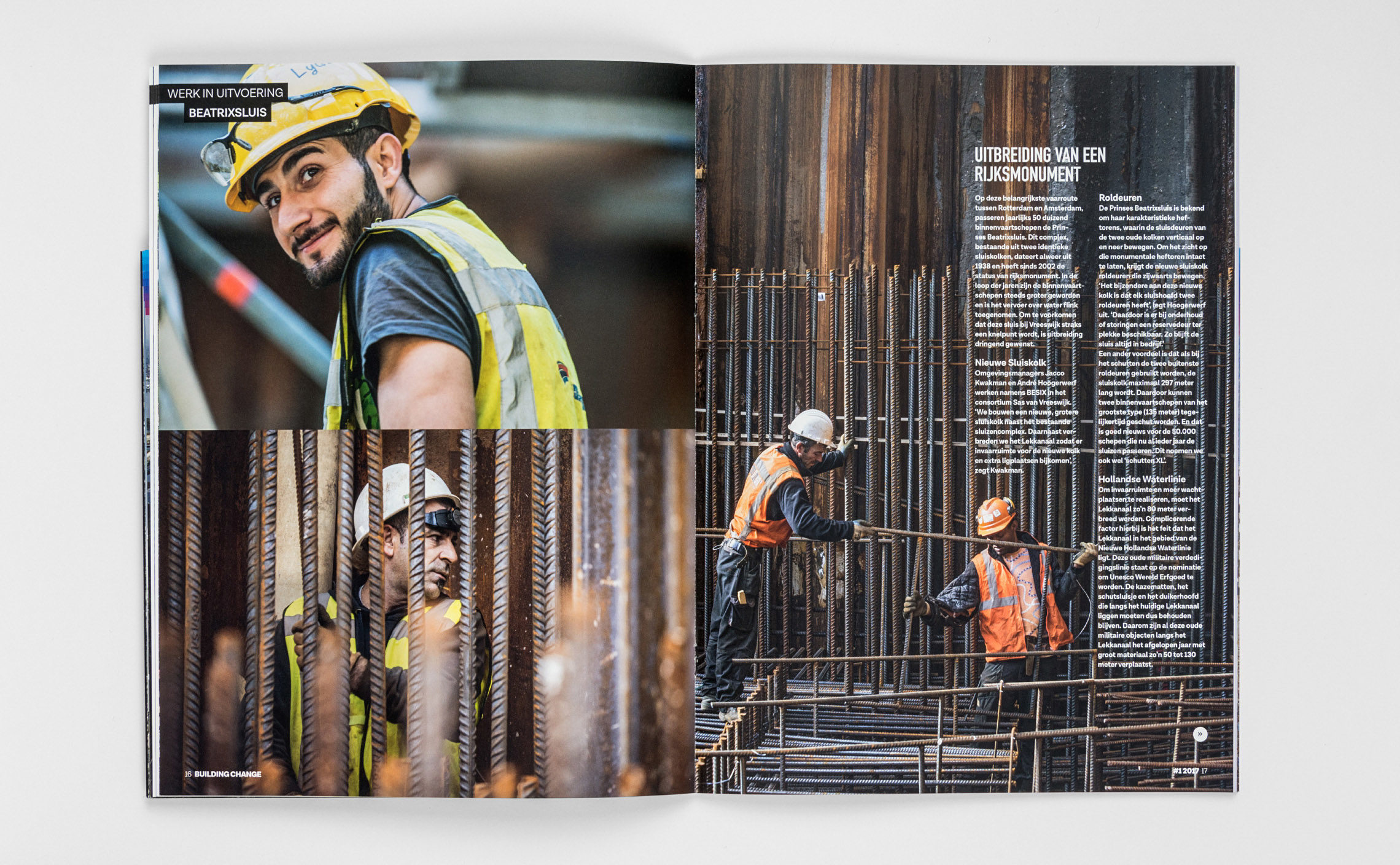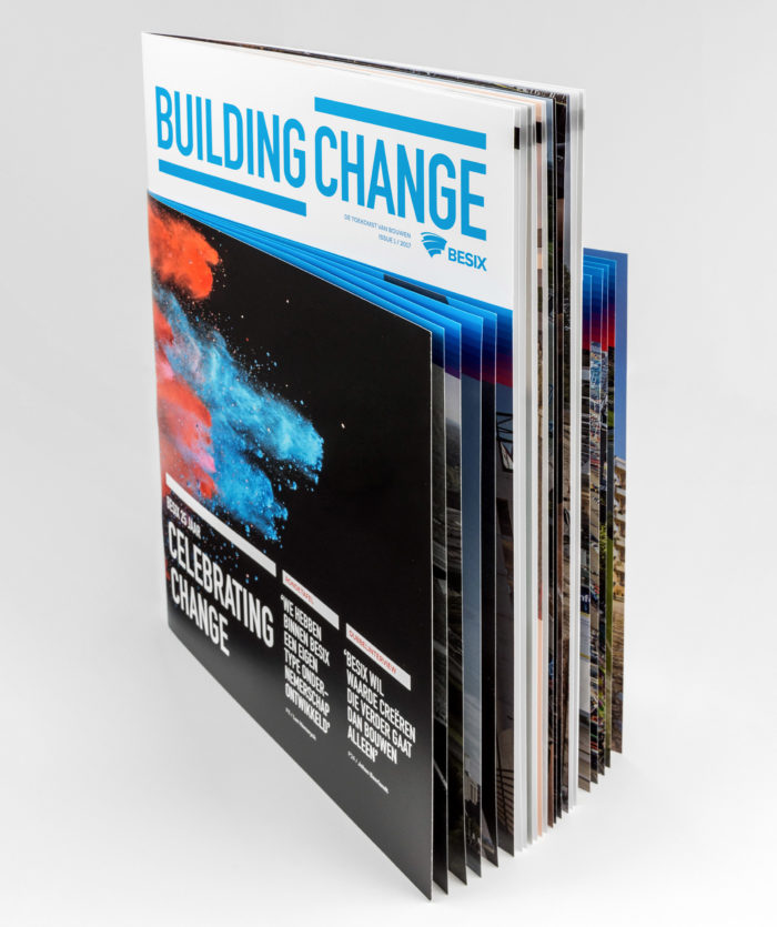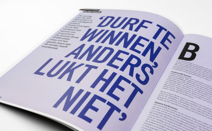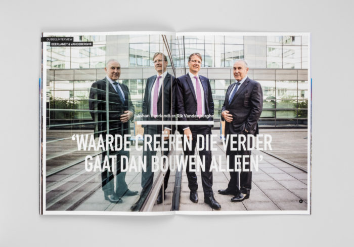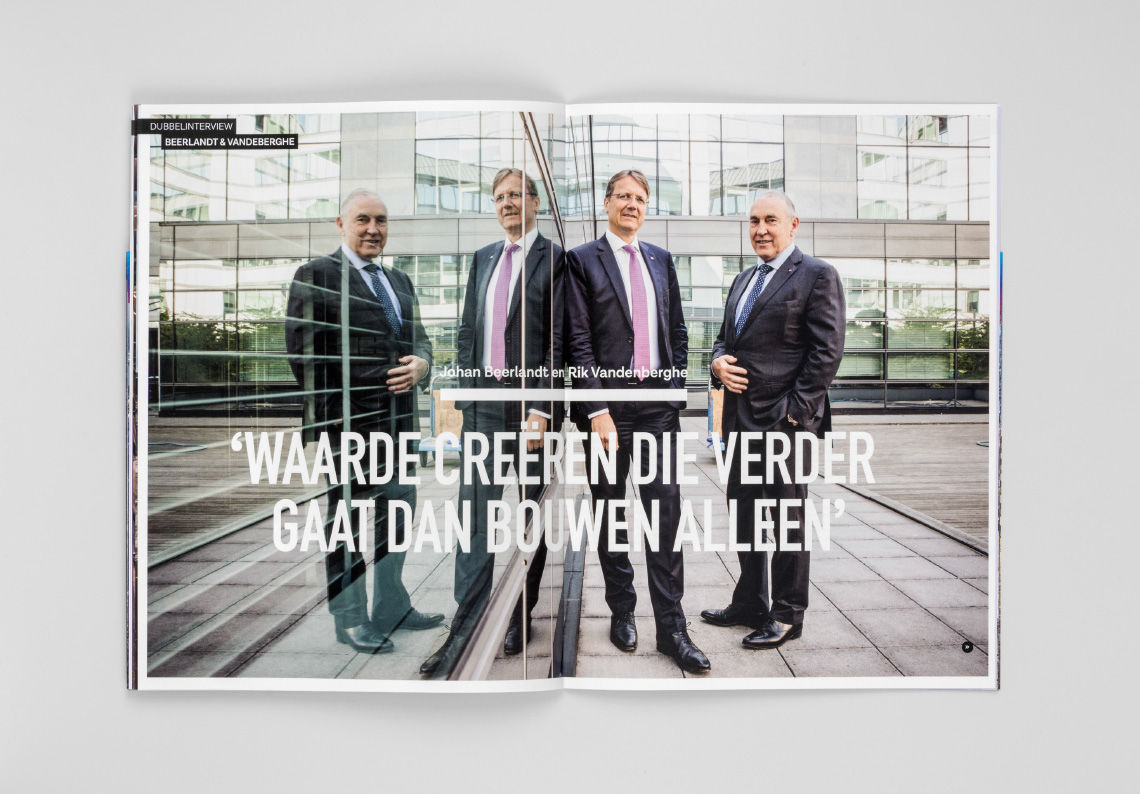 Het corporate magazine vernieuwden we zowel inhoudelijk als qua vorm. Meer mensen met verhalen, minder corporate teksten. Een platform voor vakinhoudelijke discussie, minder een nieuwsbrief. Meer reportages van lopende werken, minder een etalage van afgeronde projecten.