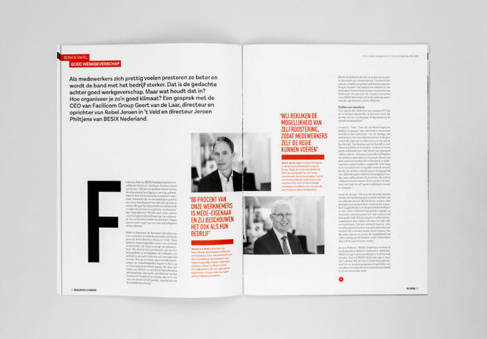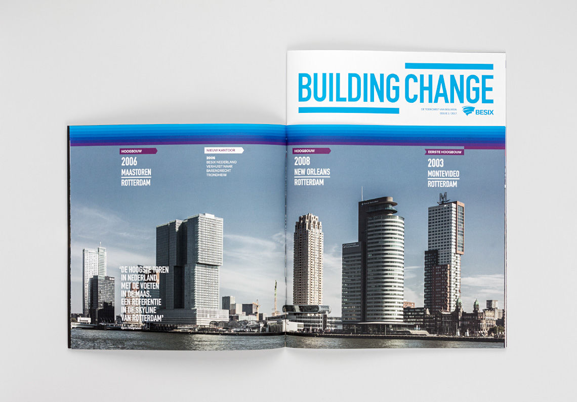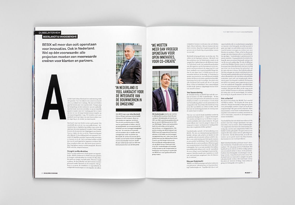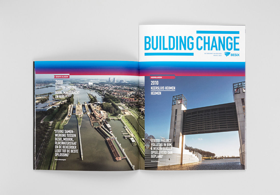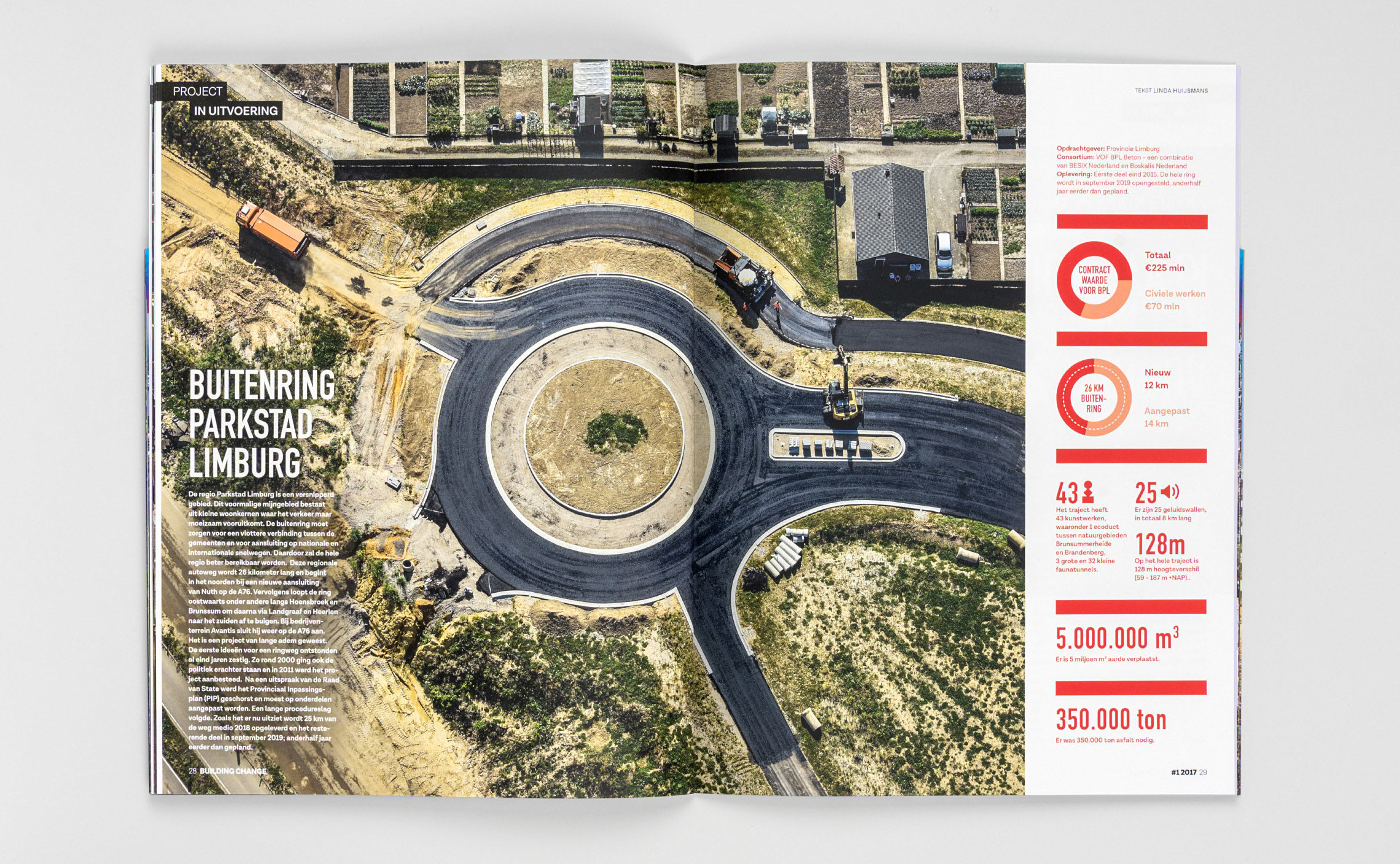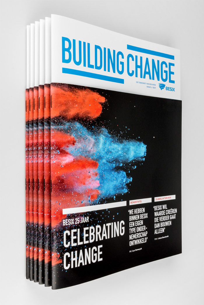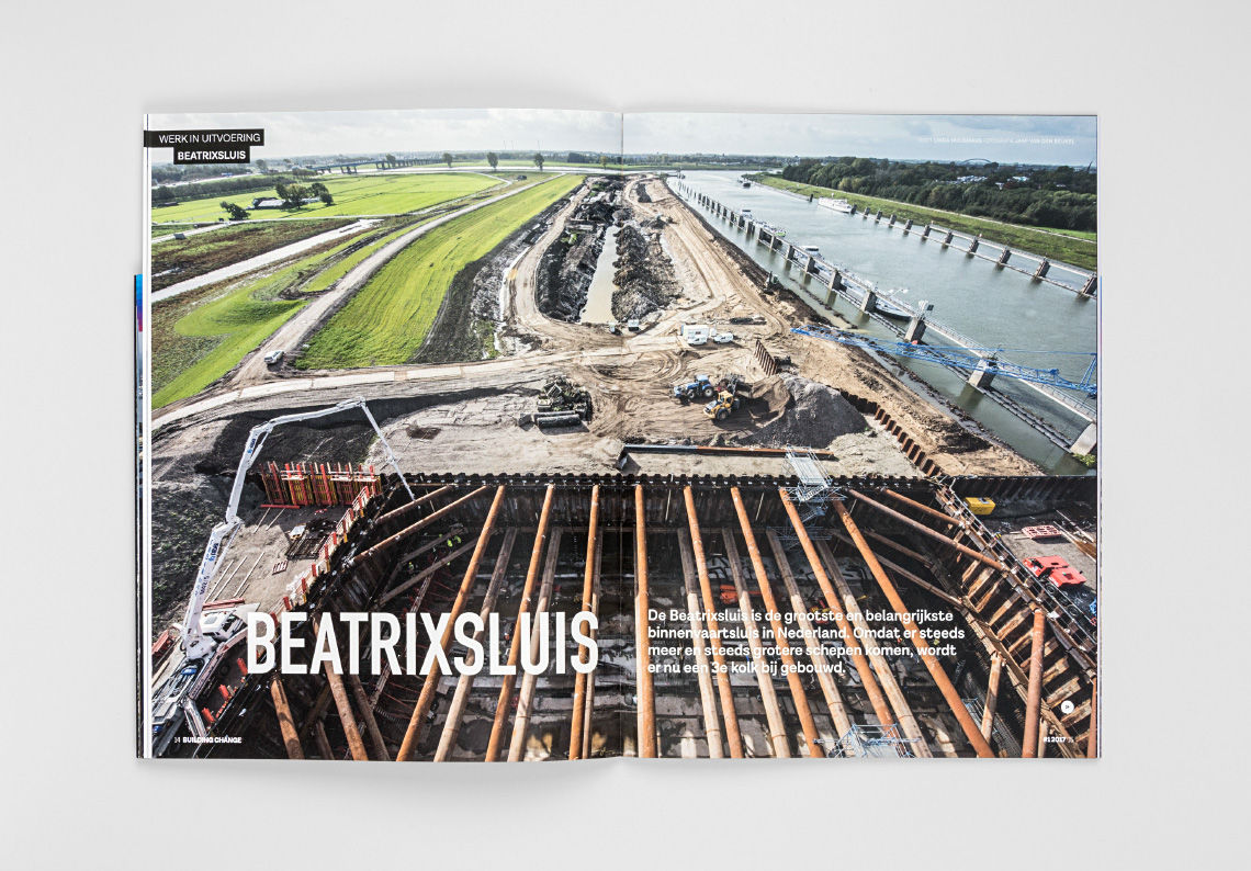 Het corporate magazine vernieuwden we zowel inhoudelijk als qua vorm. Meer mensen met verhalen, minder corporate teksten. Een platform voor vakinhoudelijke discussie, minder een nieuwsbrief. Meer reportages van lopende werken, minder een etalage van afgeronde projecten.