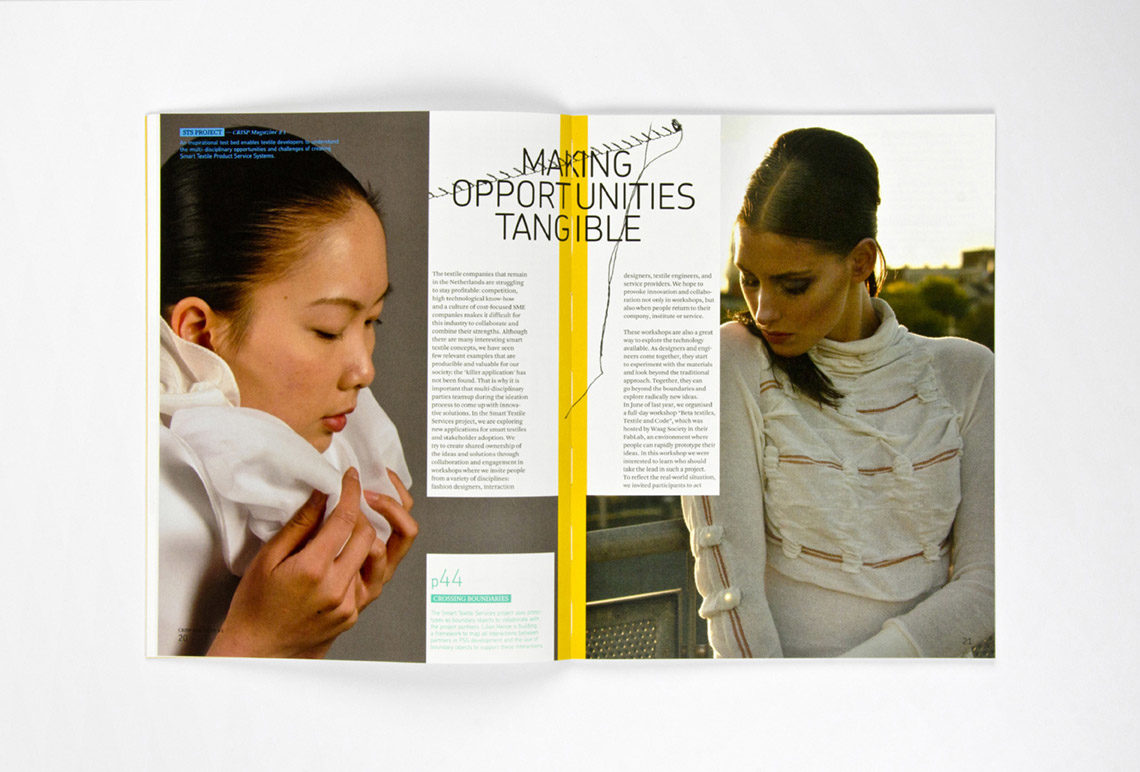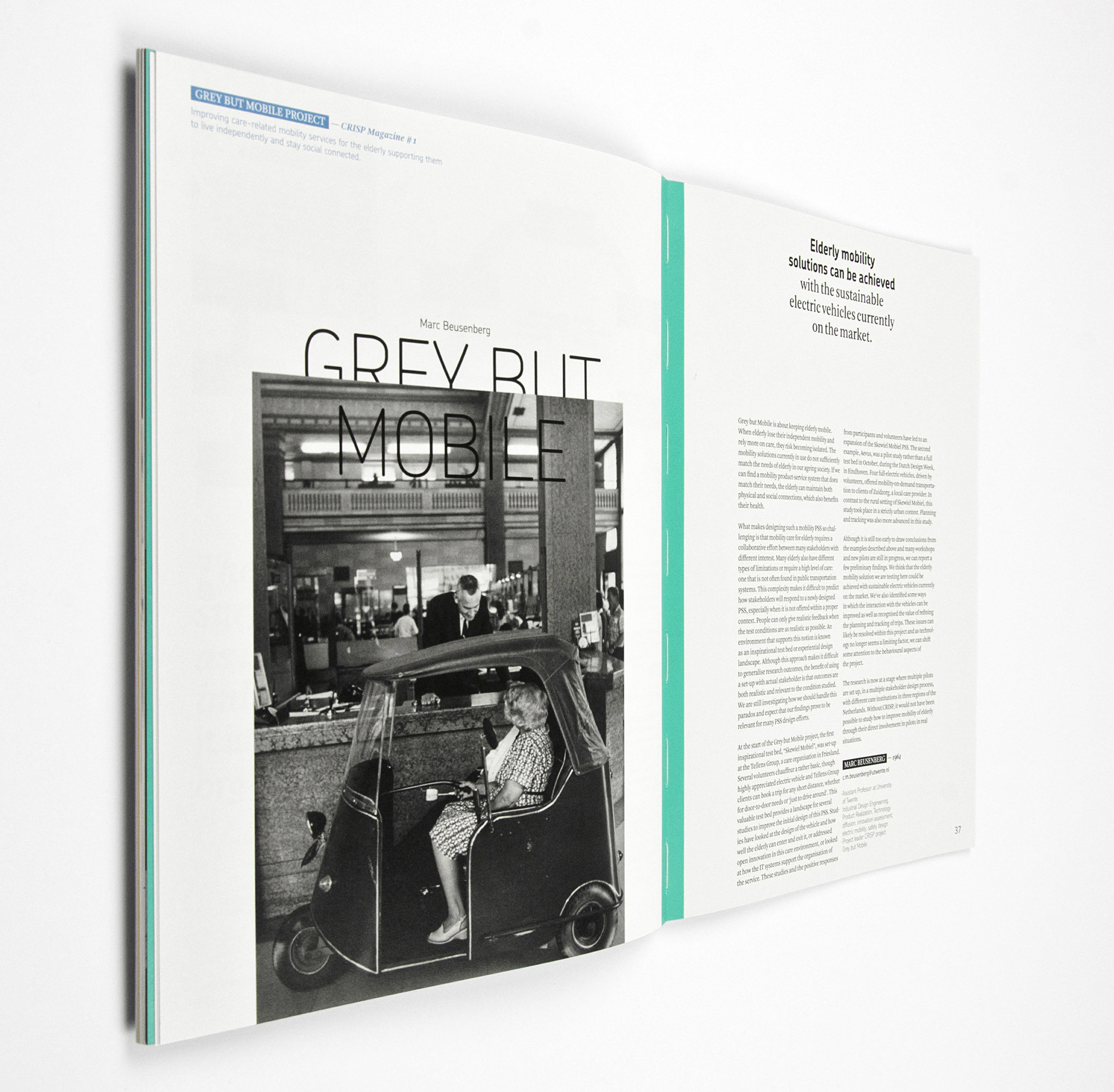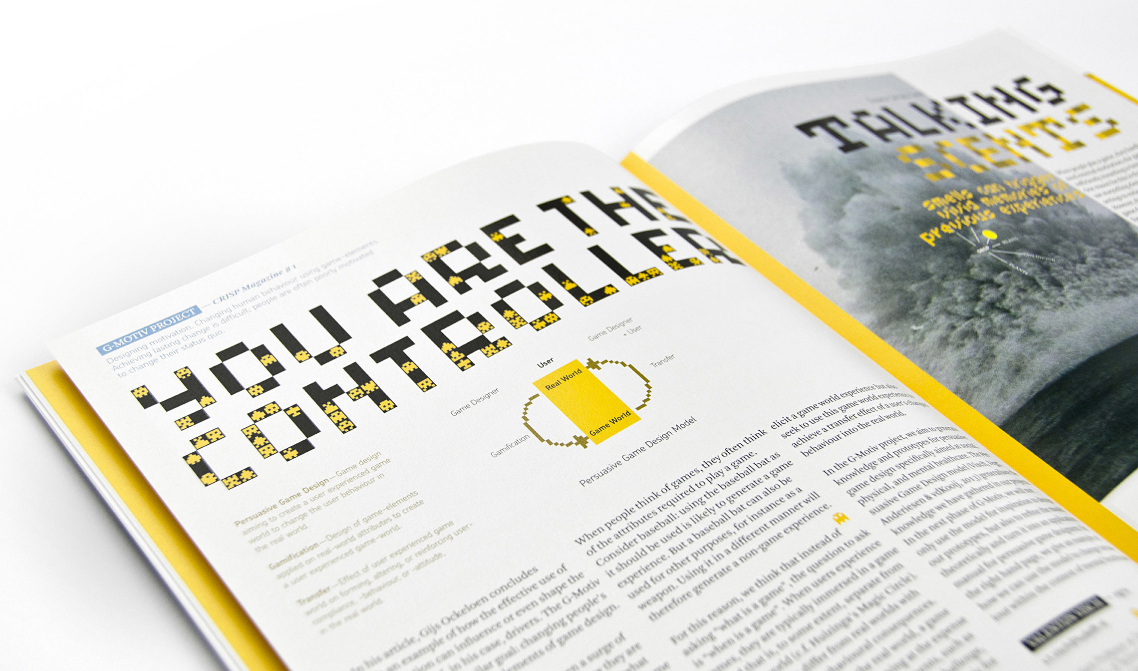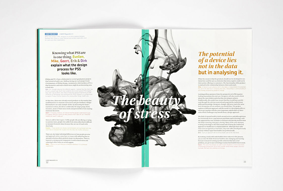 CRISP Magazine #1 is een tastbare weerslag van de theoretische inzichten uit de projecten. Zo inspireren we 200 projectleden, die dankzij deze vorm van elkaars verhalen leren. Daarnaast wordt het magazine met enthousiasme verspreid onder stakeholders. Taken By Storm maakt het magazine in intensieve samenwerking met het redactieteam, waarbij de uitdaging is om de complexe informatie te ontrafelen tot een helder visueel verhaal. De twee lagen in het issue dragen elk hun eigen kleur, en kruisverwijzingen tussen projecten tonen nieuwe verbanden.