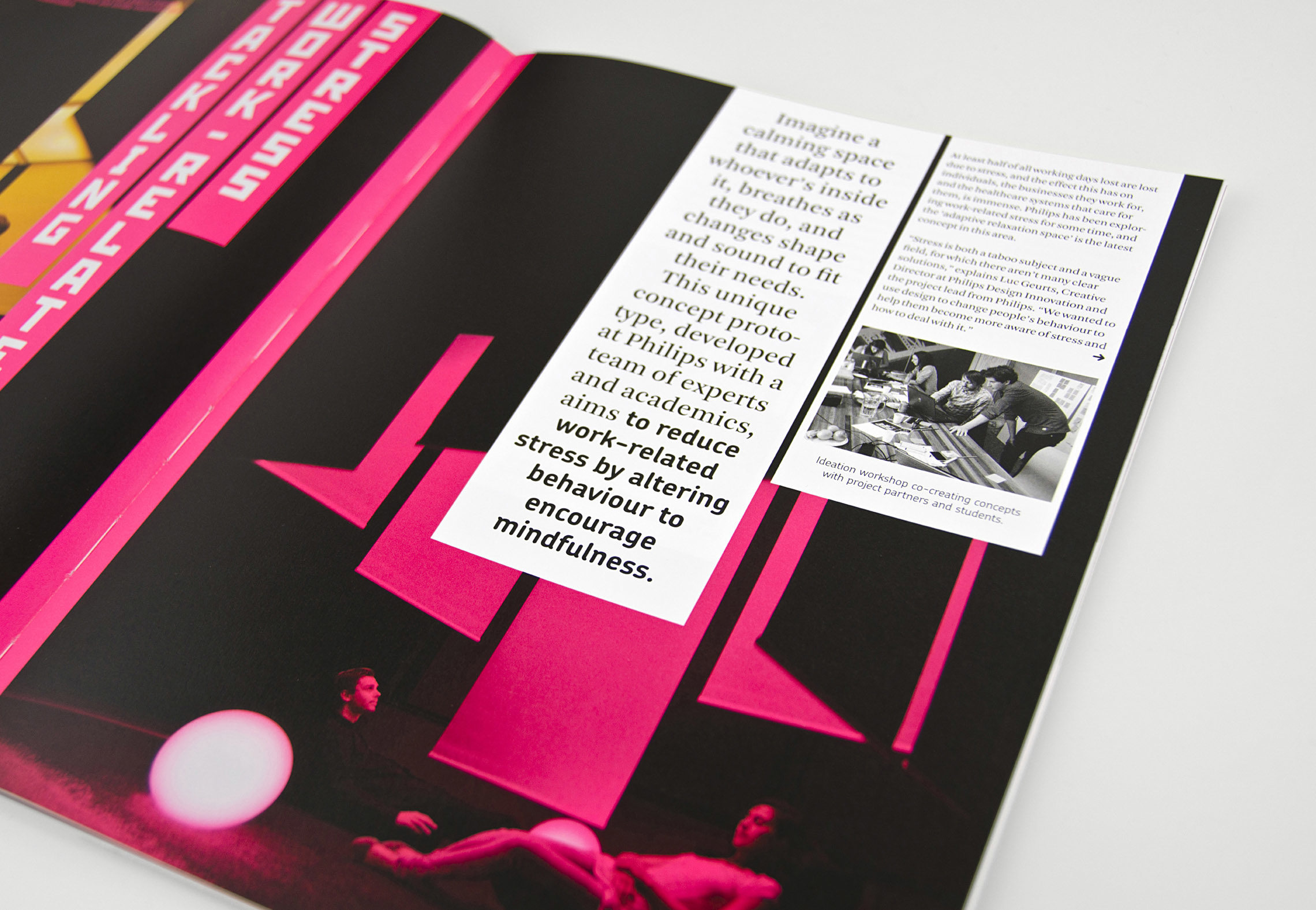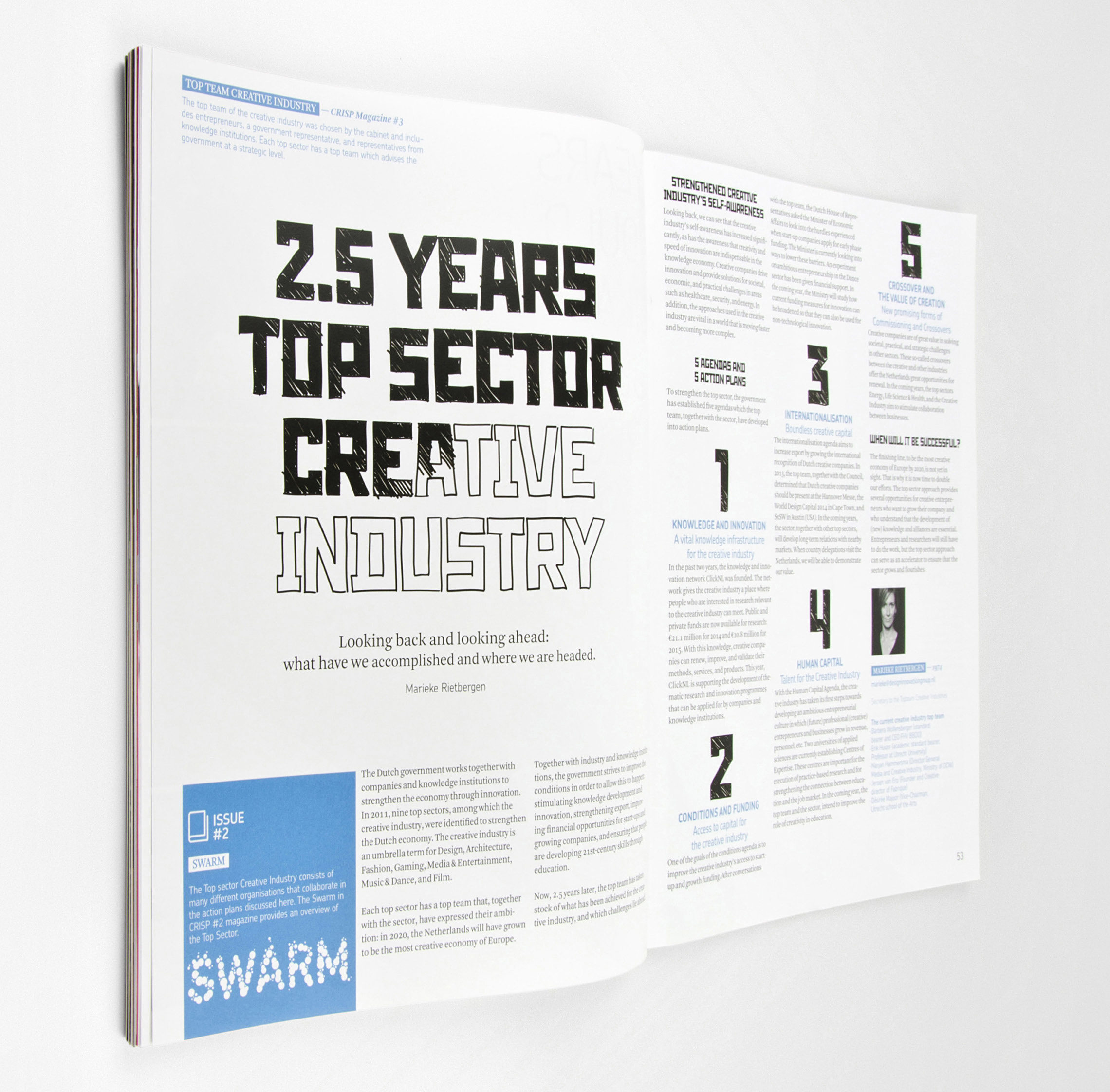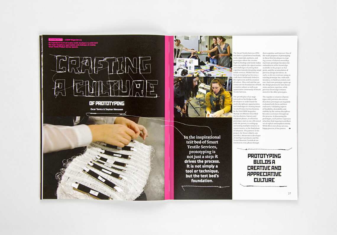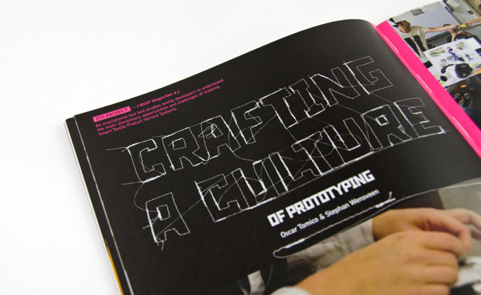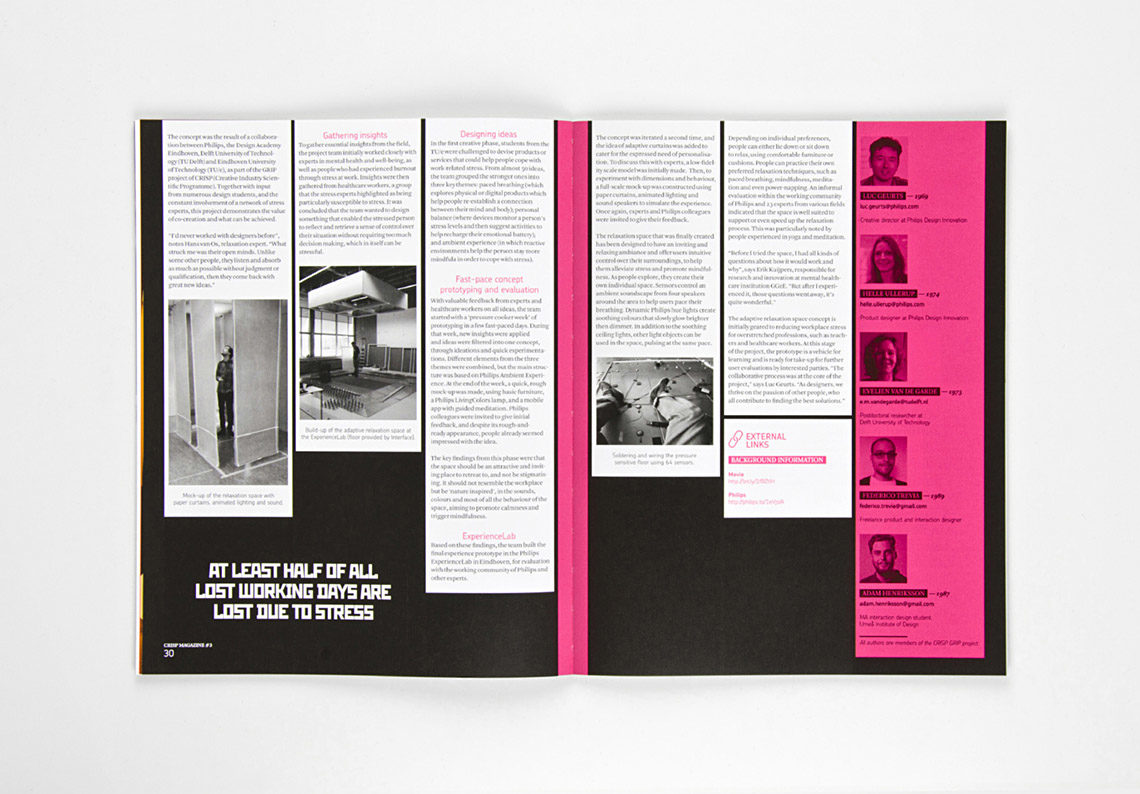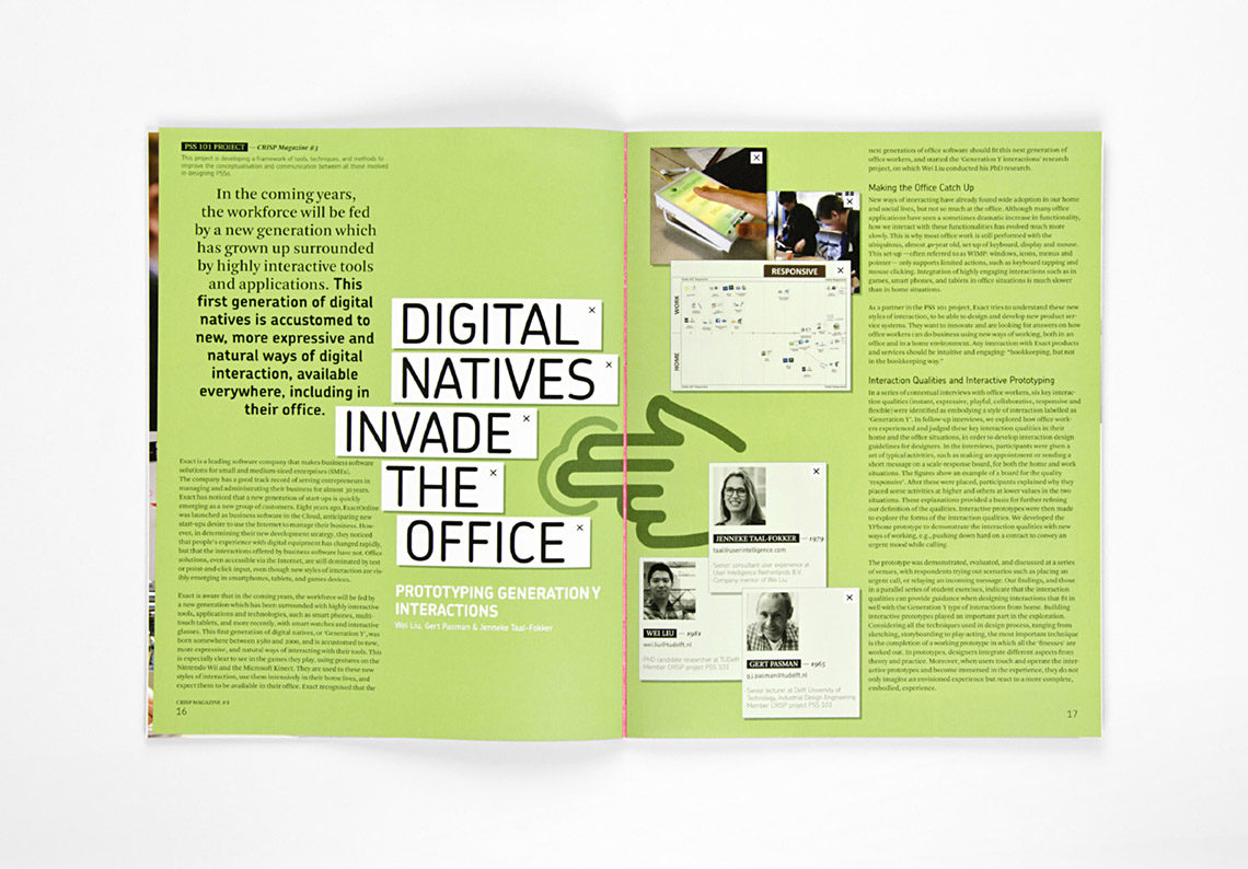 CRISP Magazine is een tastbare weerslag van de theoretische inzichten uit de projecten. Zo inspireren we meer dan 200 projectleden, die in deze vorm van elkaar leren. Taken By Storm maakt het magazine in intensieve samenwerking met het redactieteam, waarbij de uitdaging is om de complexe informatie te ontrafelen tot een helder visueel verhaal. De twee lagen in het issue dragen elk hun eigen kleur, en kruisverwijzingen tussen projecten tonen nieuwe verbanden.