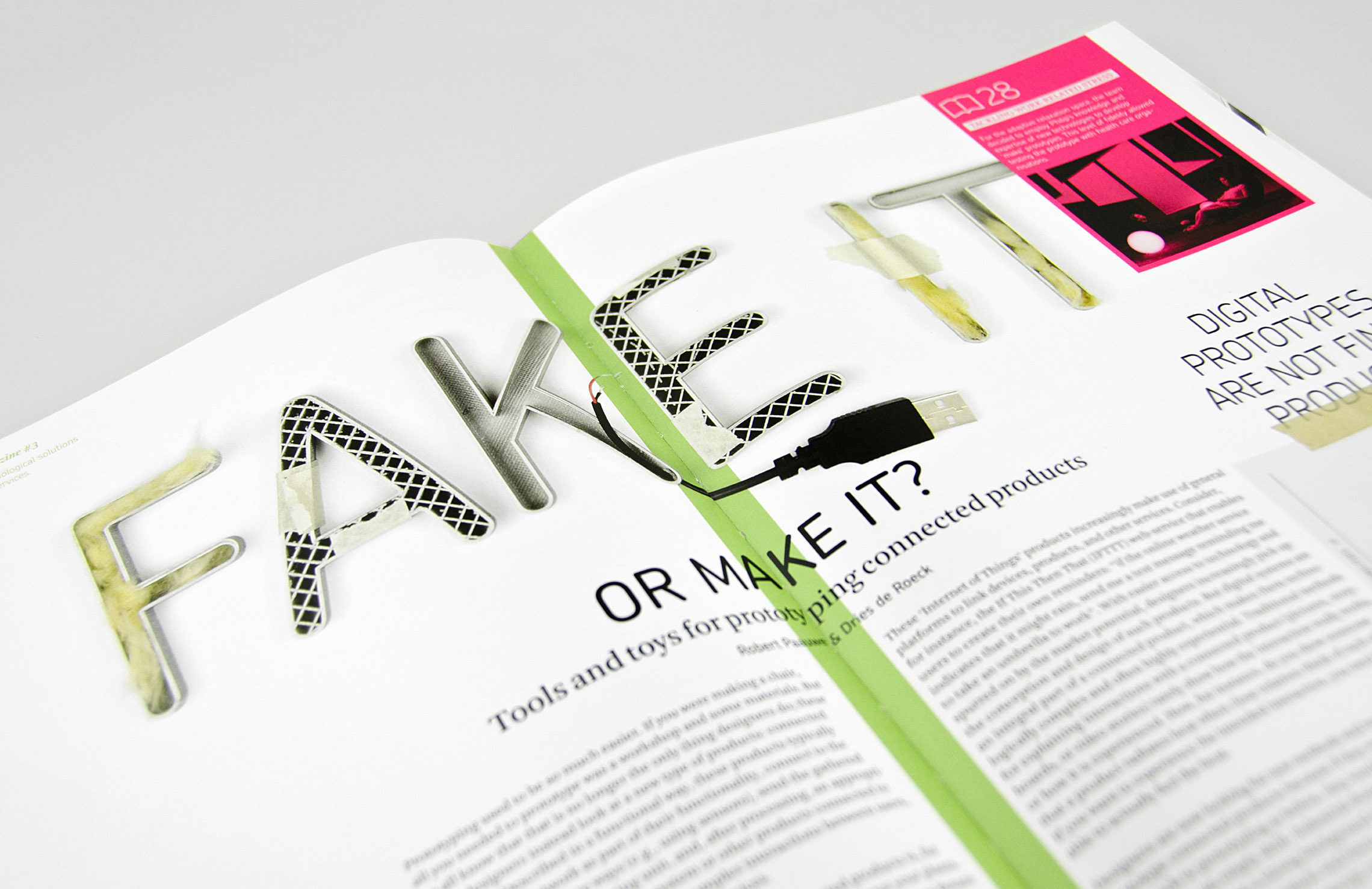 Dit nummer gaat over de waarde van het maken van prototypen voor innovatie en implementatie. Veel discussies richten zich op hoe veel nou daadwerkelijk te maken of te faken. Om de lezer te prikkelen maakten we van de titel op de cover een fysiek prototype.
