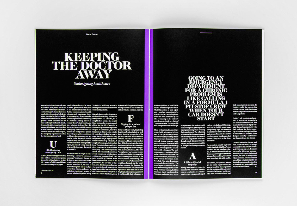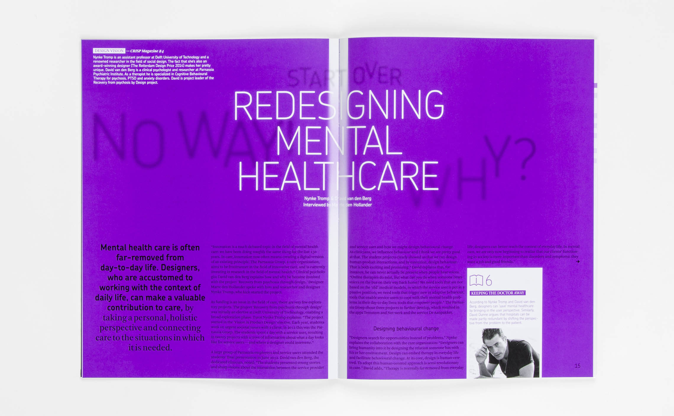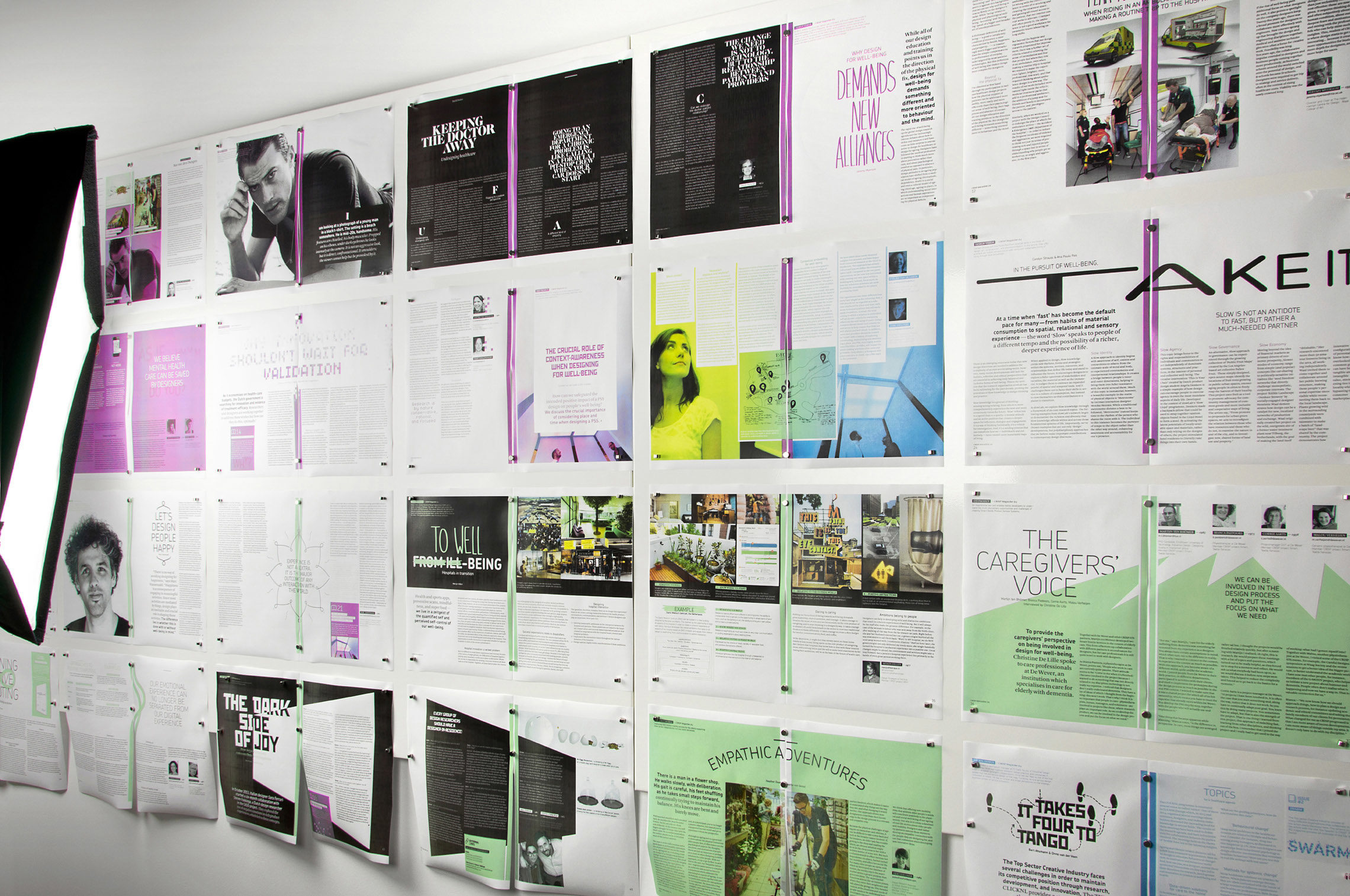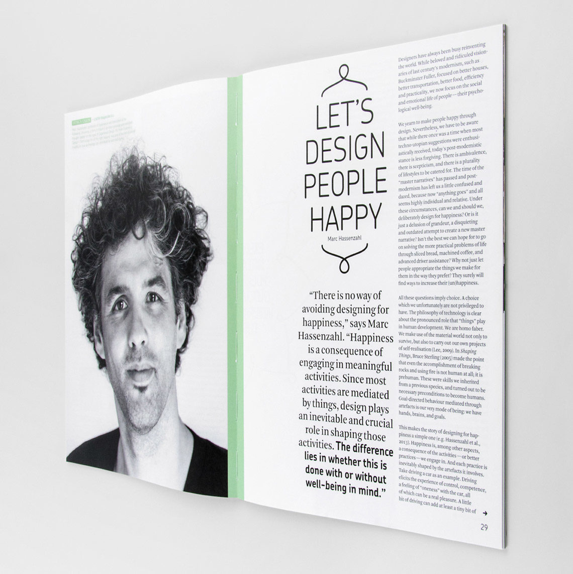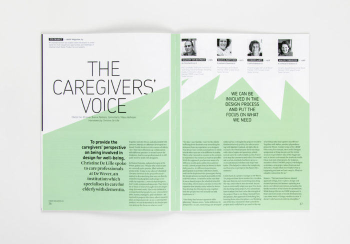 Is welzijn hetzelfde als gezond zijn? Ontwerpen voor welzijn is natuurlijk ook relevant buiten de zorg. Meningen lopen echter uiteen over wanneer en hoe een ontwerper hierin moet worden betrokken. Het magazine team zwengelt de discussie aan en geeft de ruimte aan diverse standpunten. De zorgzaamheid en zelfreflectie daarop vinden hun weerslag in de zen-achtig geïllustreerde cover.