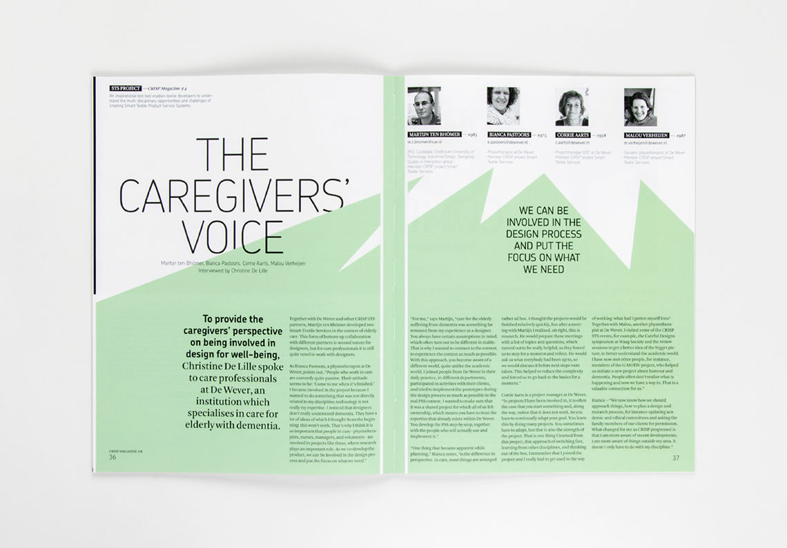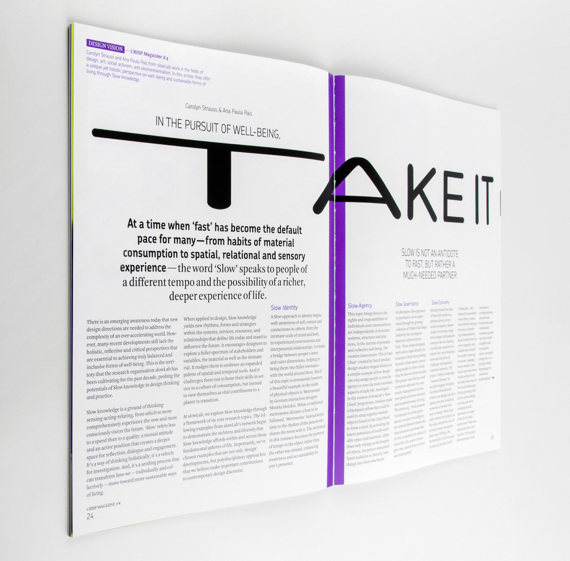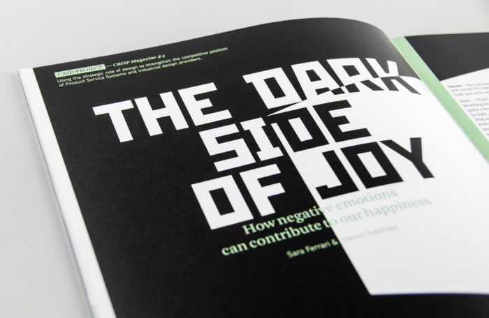 CRISP Magazine is een tastbare weerslag van de theoretische inzichten uit de projecten. Zo inspireren we meer dan 200 projectleden, die in deze vorm van elkaar leren. Taken By Storm maakt het magazine in intensieve samenwerking met het redactieteam, waarbij de uitdaging is om de complexe informatie te ontrafelen tot een helder visueel verhaal. De twee lagen in het issue dragen elk hun eigen kleur, en kruisverwijzingen tussen projecten tonen nieuwe verbanden.